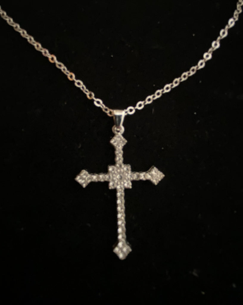 Clear Stone Cross w/ Silver 16" chain