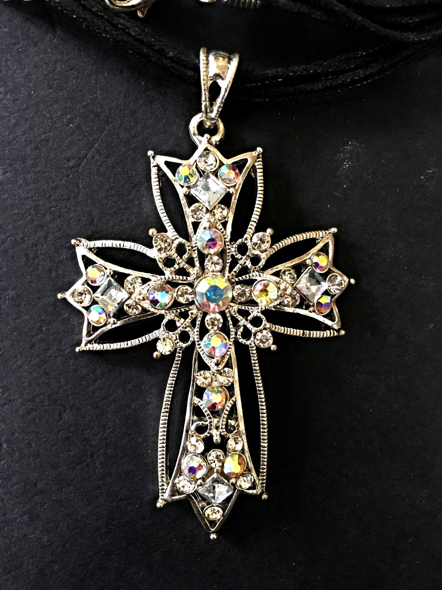 Embellished curved Cross Necklace only Clear stones left in inventory